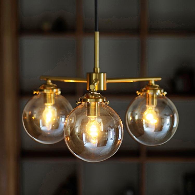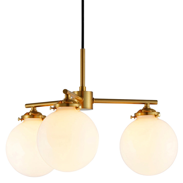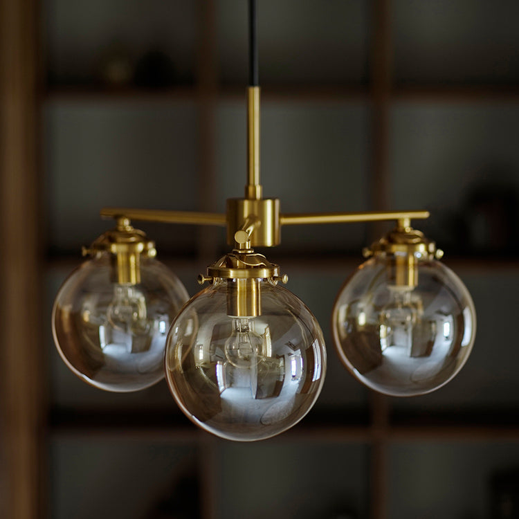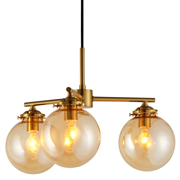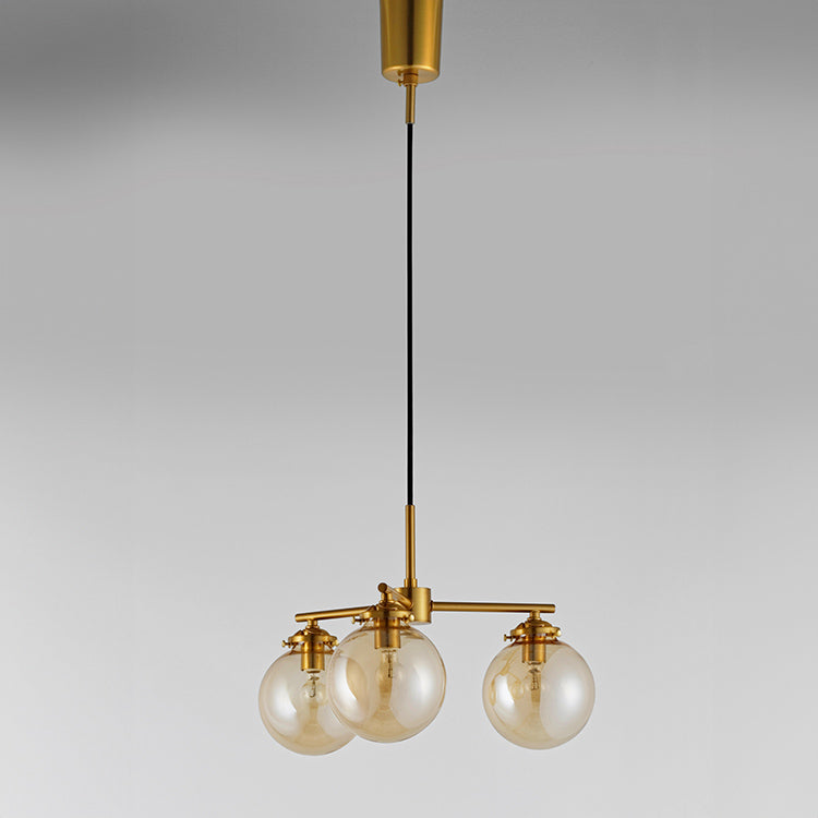ブライトゴールドのアームにシンプルなガラスシェードを合わせたモダンなペンダントライト3灯「Riquet(リケー)」。
