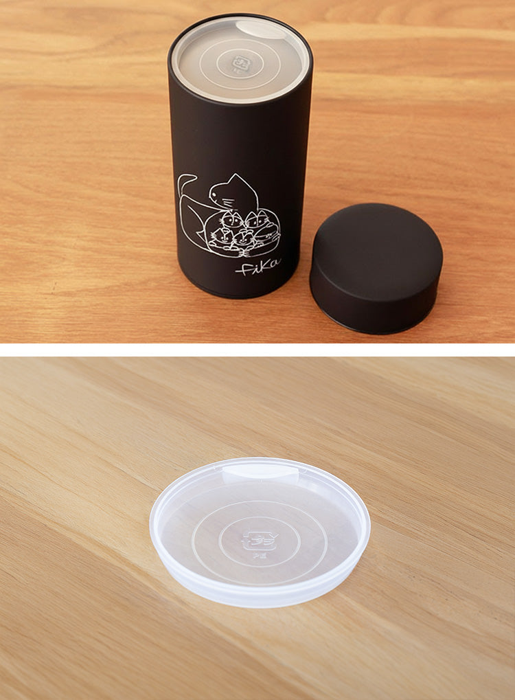 シンプルなフォルムのコーヒー缶に、友澤さんのイラストを描いていただきました。コーヒー缶の名前は『fika』です。fikaはスウェーデン語でお茶しよう!という意味です。