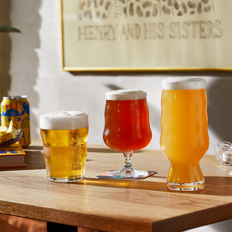 グラス下部の細いウエストは、味と香りを十分に堪能できるよう計算されたデザイン。ビールを注いだりグラスを傾けて飲むときに液体に動きを与えることでアロマが放出されやすく、上部の狭い部分によって香りが保持されます。
