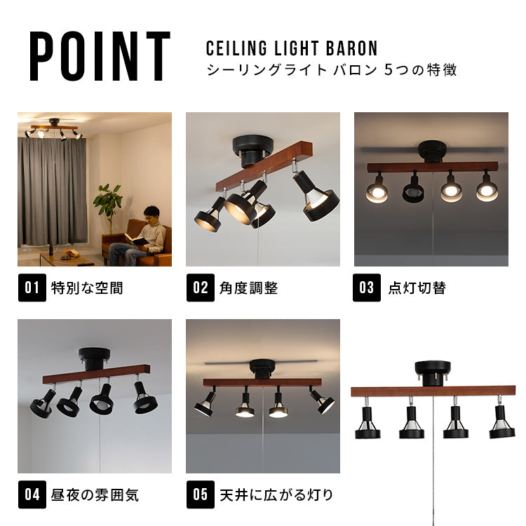 シーリングライト ストレートタイプ リビング用 ダイニング用 書斎用 LED電球対応 口金E17 4灯シーリングライト 点灯切替 角度調整 スポットライト 天井照明 間接照明