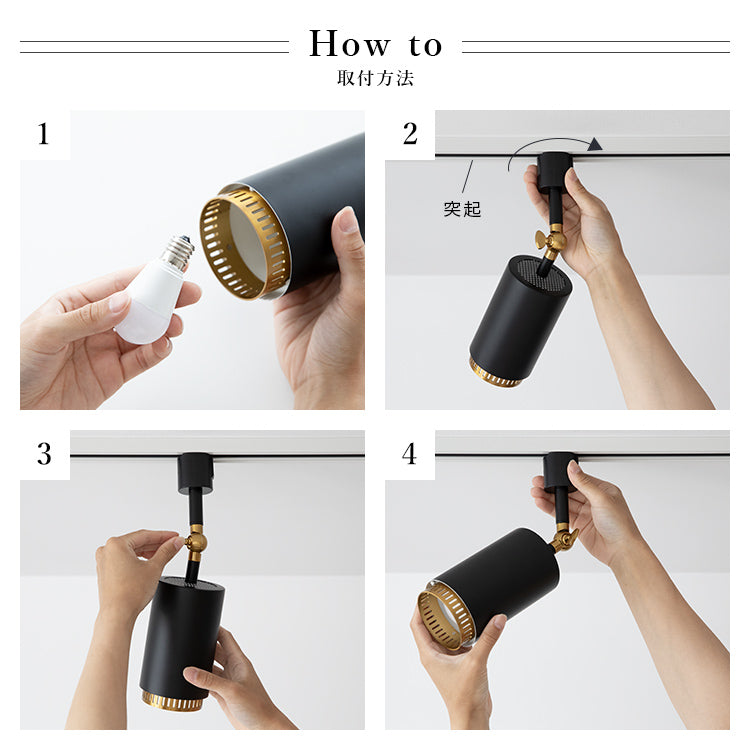 ネジパーツで角度調整は約180°、灯具を左右約350°回転させることができます。