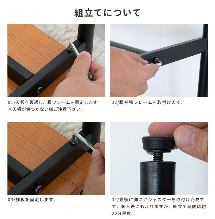 天板や棚板には高級感のあるウォールナット突板を使用。世界三大銘木と呼ばれるウォールナットは木目が美しく、さり気なく存在感を醸し出します。また、天板のフチを斜めカットしているためシャープな印象を与えてくれます。