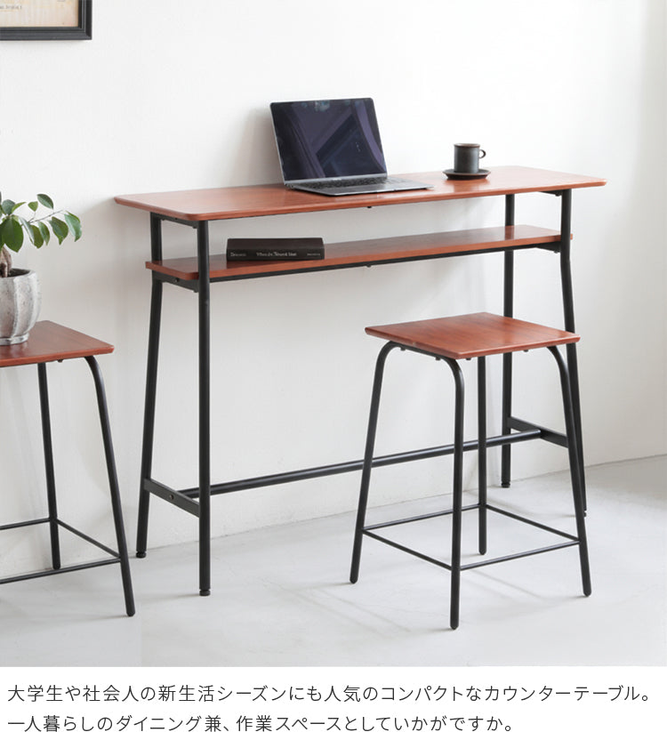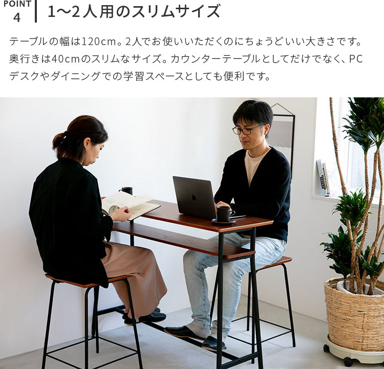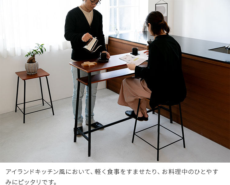 天板には苦い木目が特徴の、天然木ウォールナット突板を使用。ブラックスチールとウォールナットは相性抜群の組合せ。シンプルなデザインなので、インテリアに馴染みます。カウンターテーブルはもちろん、一人暮らし、二人暮らし用のダイニングテーブルや、パソコンデスクとしてのご使用もお勧めです。