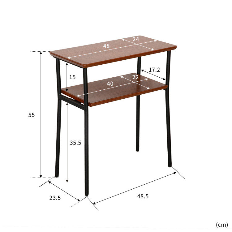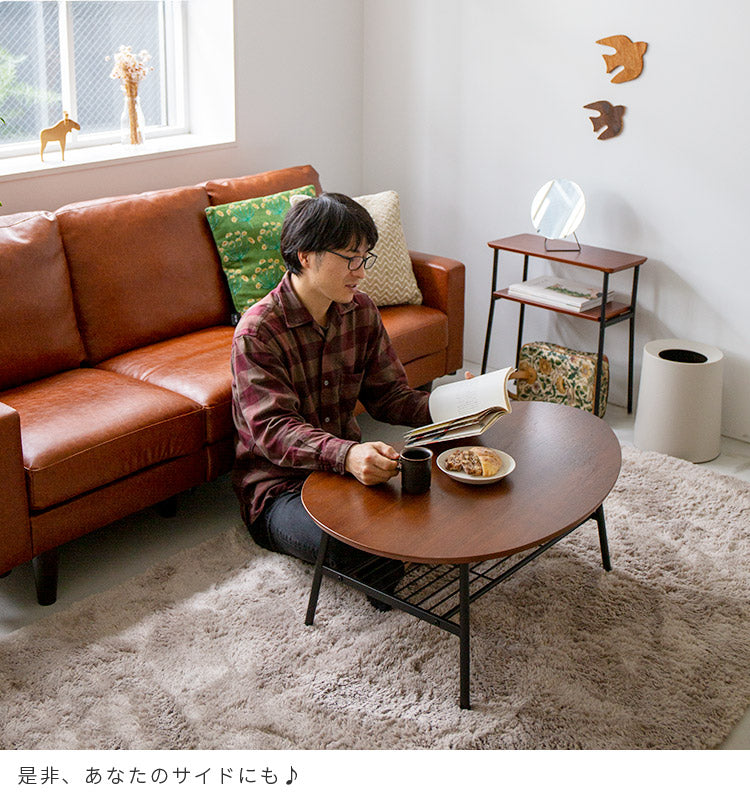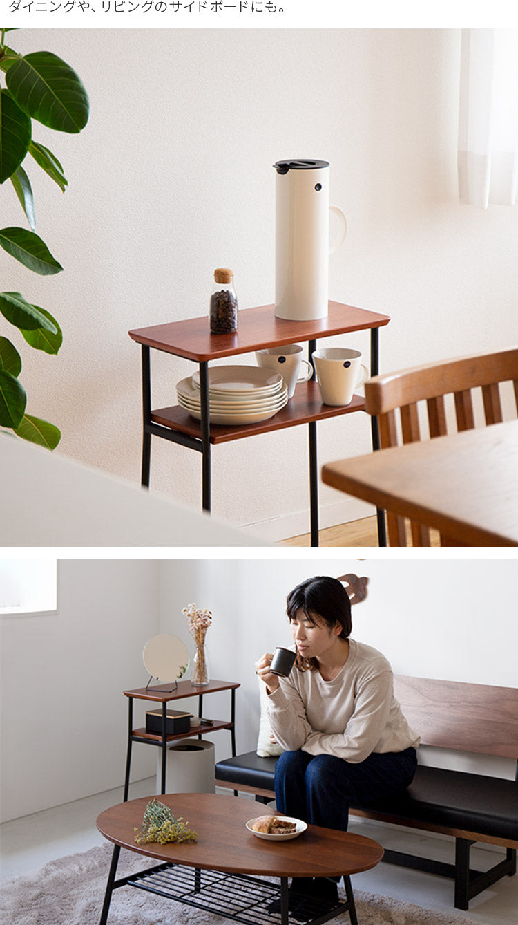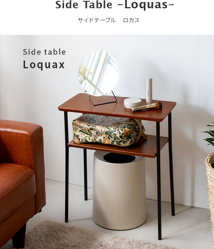天然木ウォールナット突板を贅沢に使い、棚を取り付けて利便性を高めた「Loquas(ロカス) サイドテーブル」。