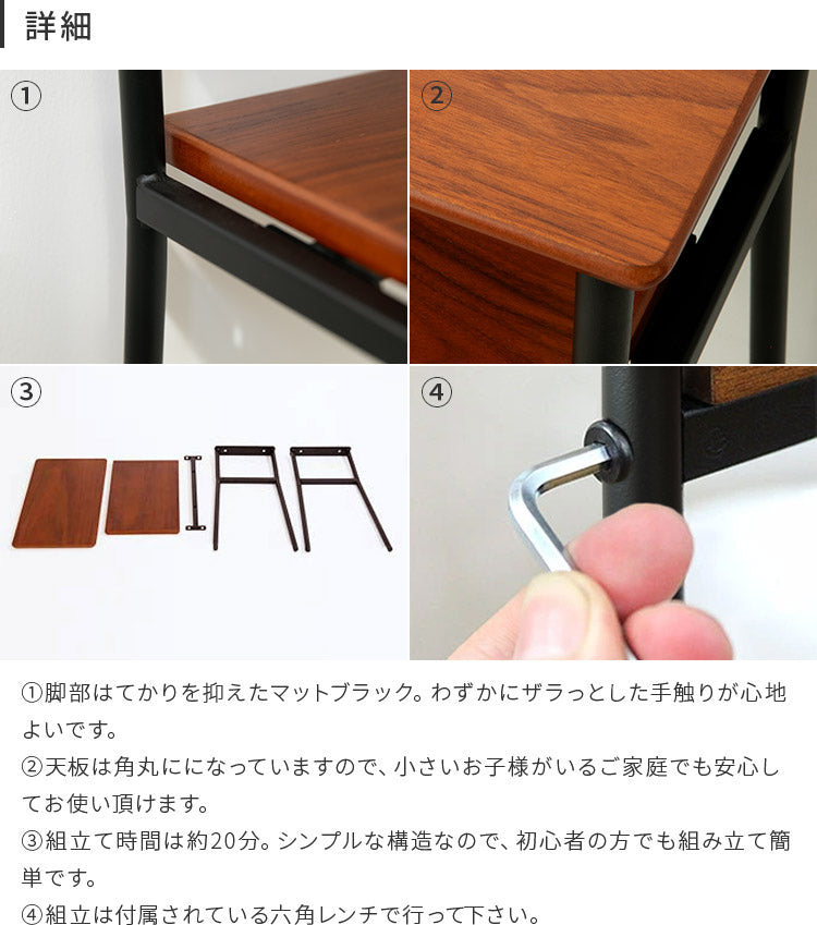 シンプルなデザインに仕上がっていますが、細部にはこだわりを。テーブルの角はすべて丸く加工し、手触りの良い曲線に。脚部分は少しくびれる事で安定感が増し、柔らかな印象を与えてくれます。