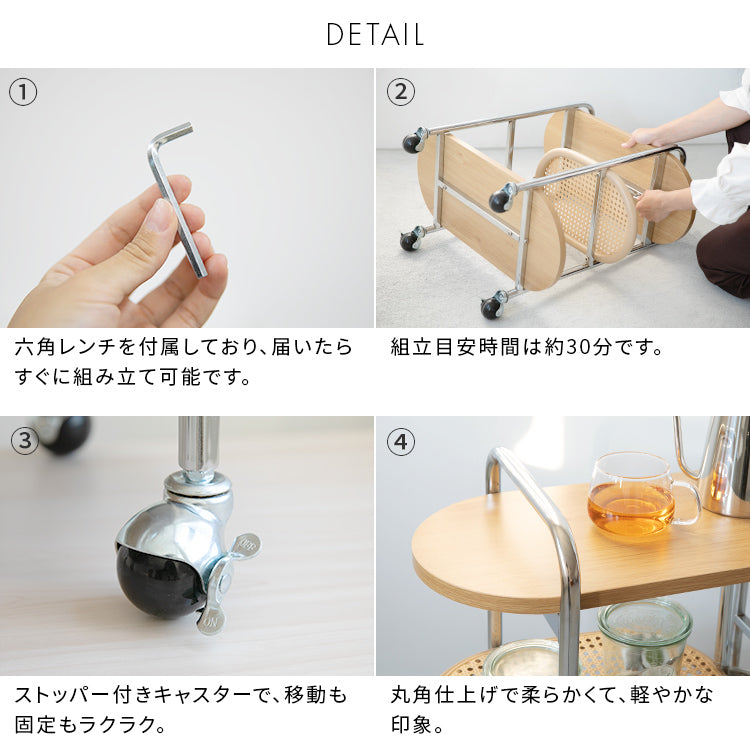 天板やラタン棚は水や汚れに強いメラミン化粧板や樹脂を使用しているため、水に濡らし絞った布等で汚れをふき取ることができます。