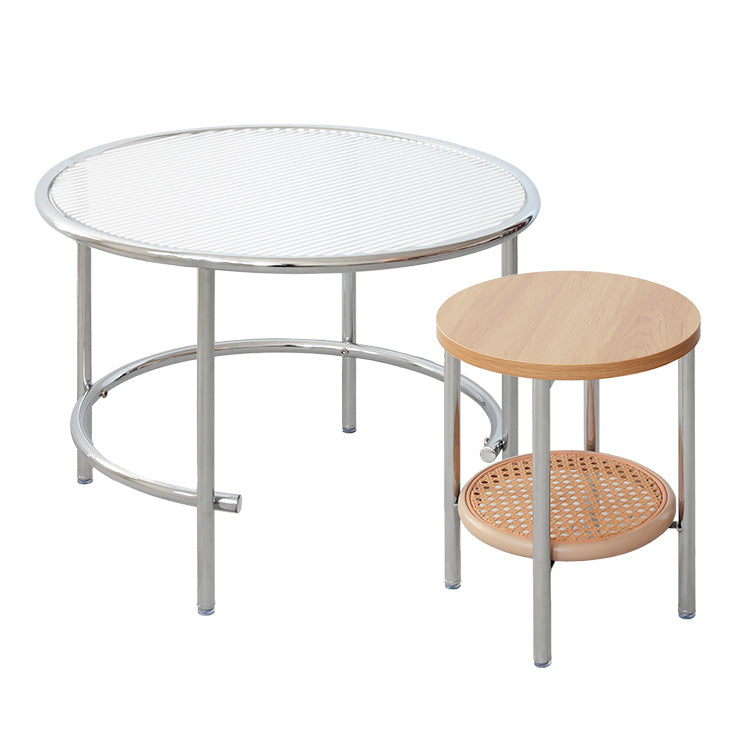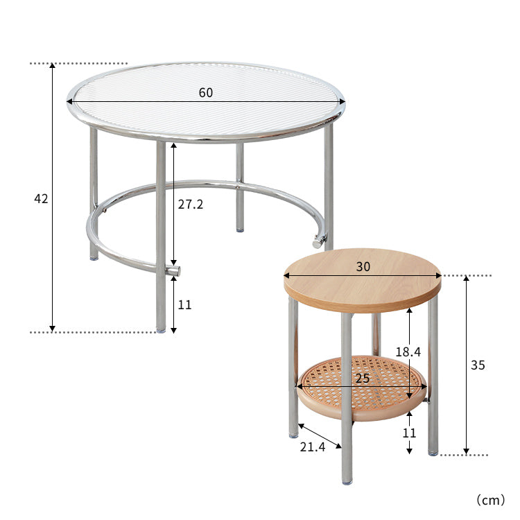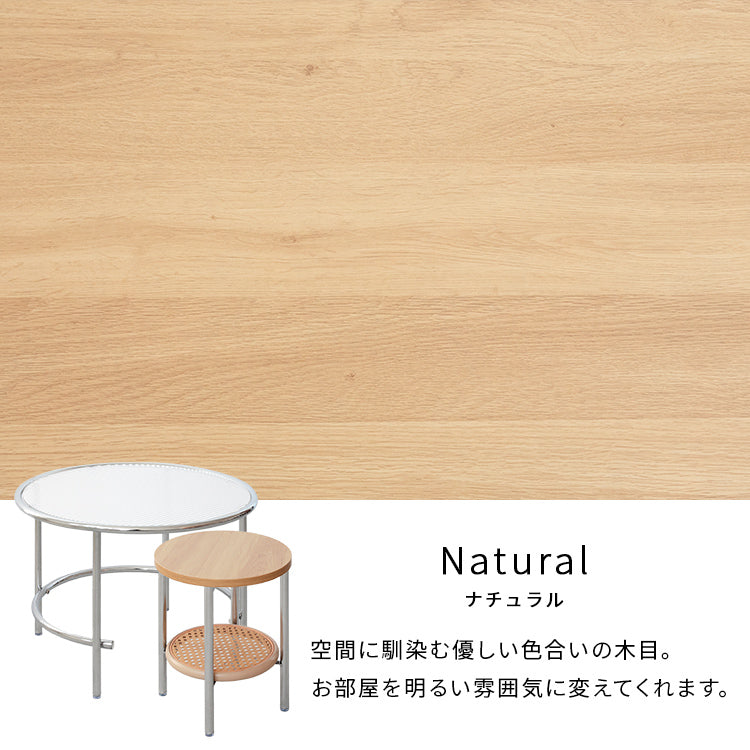 大小2つのテーブルを重ねたり、広げたりして天板の広さを自由に調節できます。使わない時は重ねてコンパクトに、